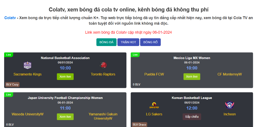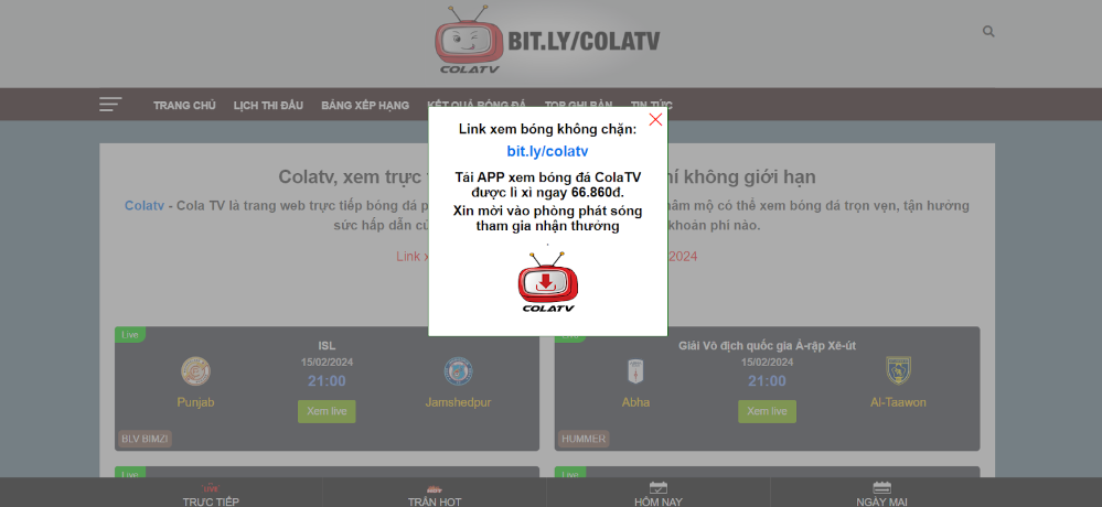 Trang web ColaTV hiện đang điên đảo người dùng trên nền tảng trực tiếp bóng…